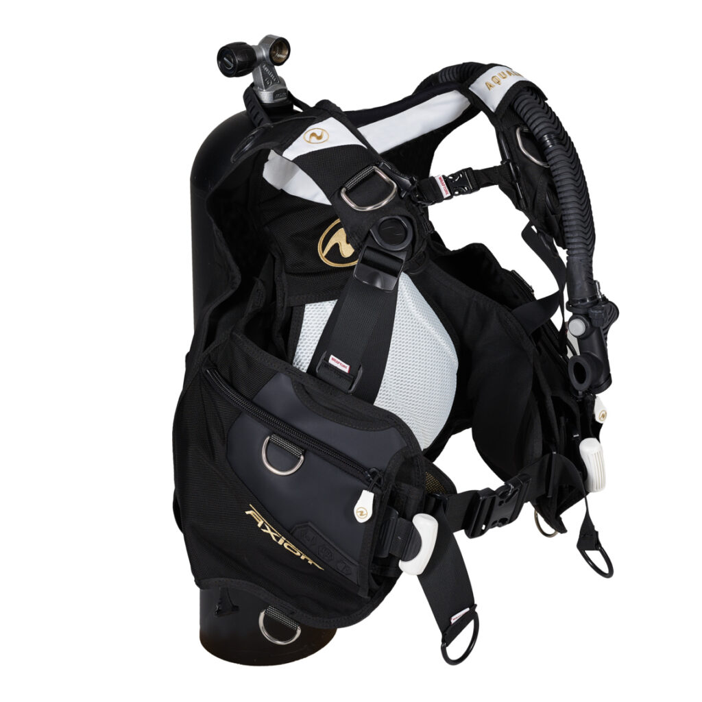女性に最適なデザインと機能を備えたAxiom Women。ラプチャーハーネスシステムが体をしっかりホールドし、タンクの重さを分散させることで直立姿勢を保る革新的なジャケットタイプB.C.。丈が短く再度がカッティングされヒップにナチュラルにフィットします。